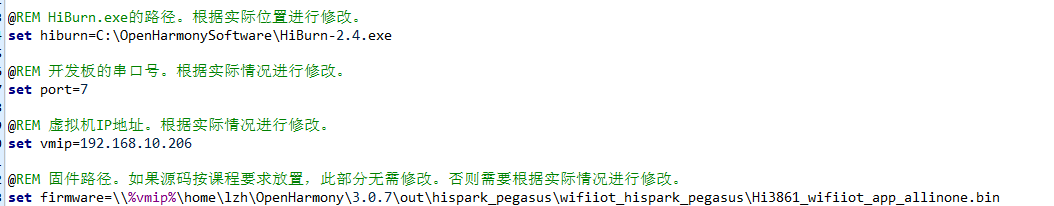 文本编辑打开修改HiBurn.exe、串口号、虚拟机IP、虚拟机文件地址,双击即可完成烧录,无需来回点击HiBurn配置参数(切记先断开MobaXterm串口)