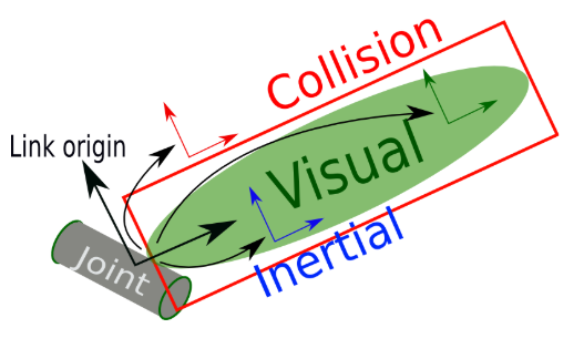 - collision:用于指定 link 的碰撞属性。可以与 link 的可视化属性一致,也可以不同。