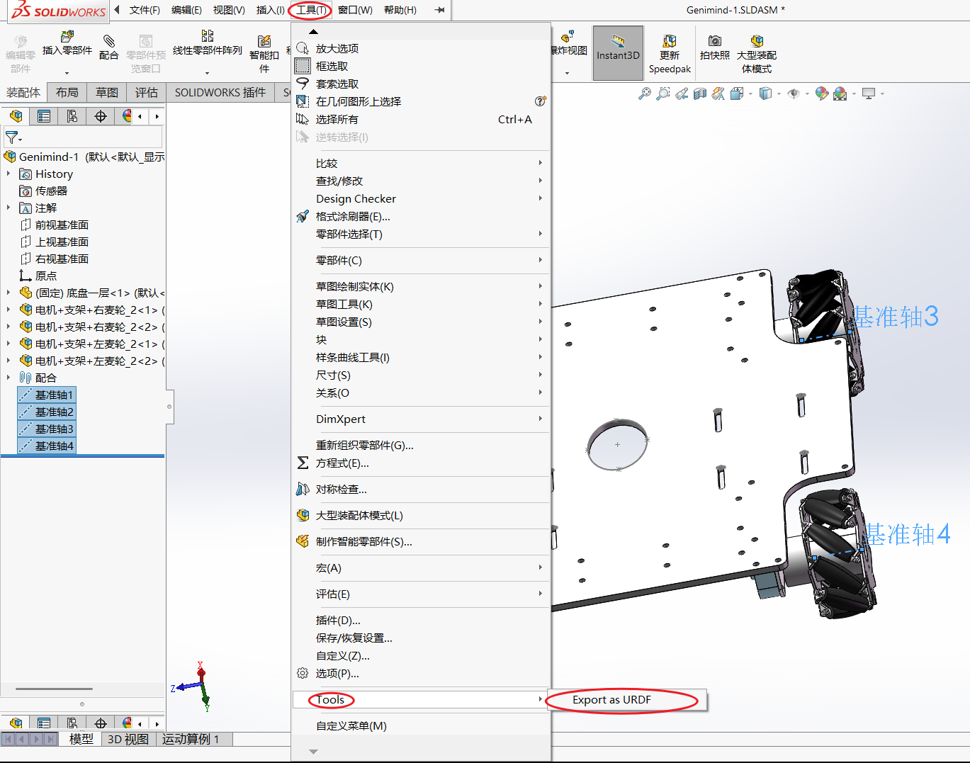 在实际的开发工作在,我们不太可能纯手敲一个机器人模型,我们一般都使用3D建模软件进行机器人的建模,因此官方也提供了一个solidworks插件可以直接导出urdf文件。