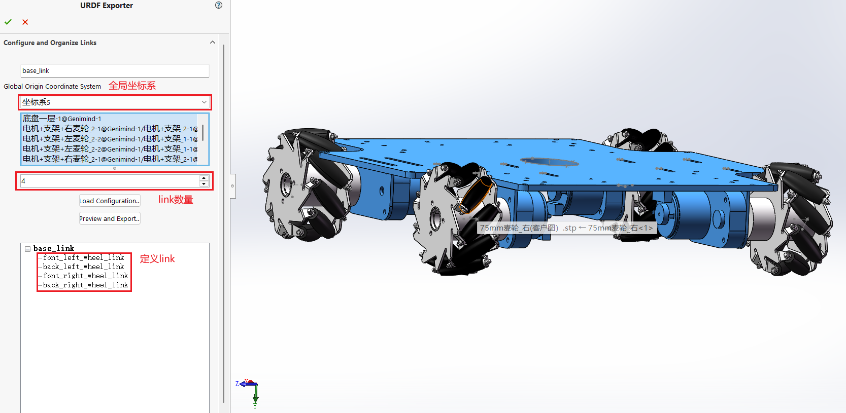 🕔配置link,每个link对应一个坐标系,与前面自己设置的坐标系对应。