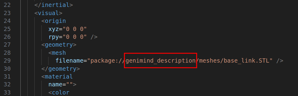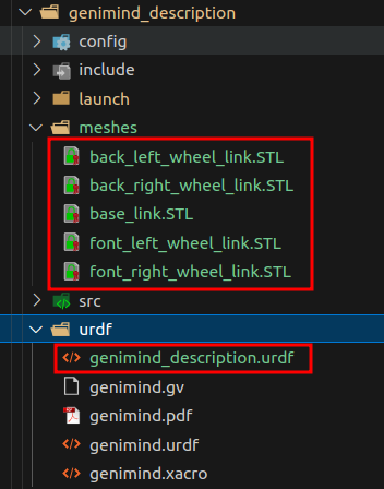 urdf文件的每个link的这个名称一定和功能包一致,按我说的导出时填功能包的名字(即genimind_description)就不会错。