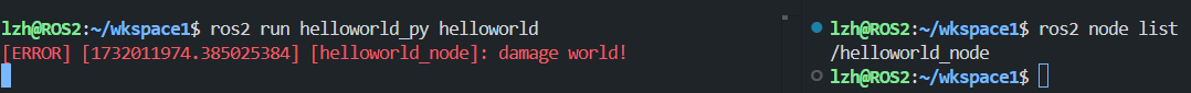 初学者很容易弄混,setup.py中的 映射名称 helloworld,和源代码中的rclpy.create_node("helloworld_node")中的helloworld_node都是节点。但事实上,helloworld是映射源文件与可执行文件的一个别称,仅用于终端运行可执行文件时使用;而helloworld_node才是真正的节点名称,即可以用ros2 node list查到的节点,如下图: